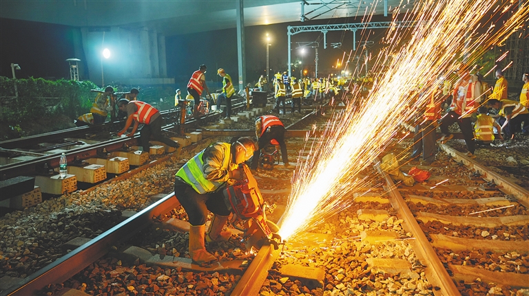2024年11月12日,位于海口市粤海大道1号的海口站,300多名工人在深夜里开展铁轨切割、拨移与连通等作业。这是海口南港“二线口岸”(普铁旅客)查验设施建设的关键环节,该口岸是海南岛内外联通的重要枢纽,对海南全岛封关运作意义重大。