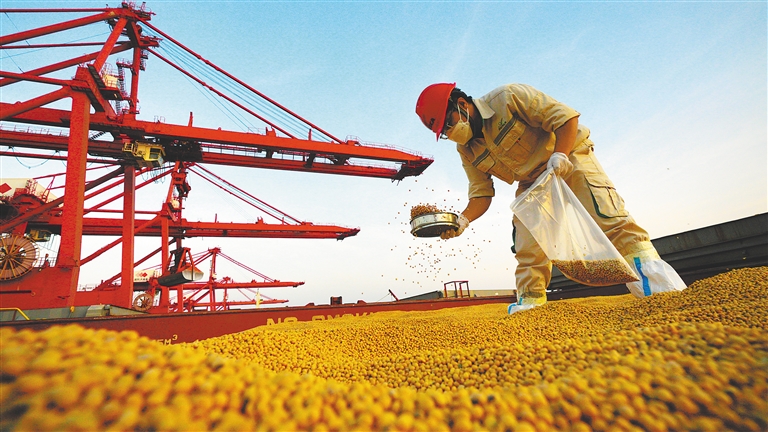 2025年11月26日,在国投洋浦港5号泊位,报关员对一批来自国外的大豆进行抽检。这批大豆将在自贸港内的企业加工,并享受加工增值内销免关税政策。该政策是海南自贸港最具“含金量”的政策之一,进口料件在海南自贸港加工增值超过30%(含)的货物,经“二线”进入内地免征进口关税。