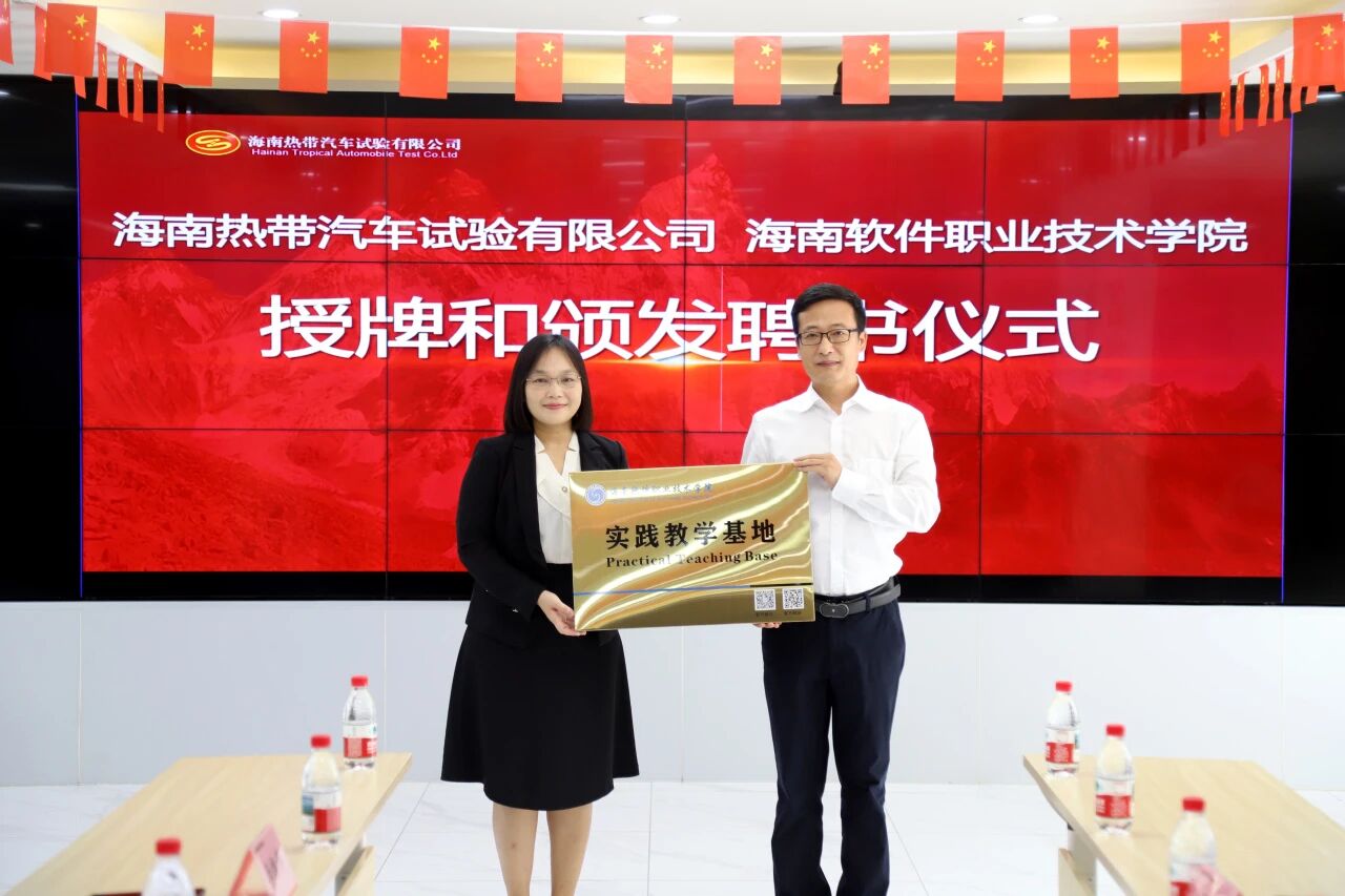 12月23日上午,海南软件职业技术学院与海南热带汽车试验有限公司共建“实践教学基地”揭牌暨行业导师聘任仪式在海南热带汽车试验有限公司举行。海南热带汽车试验有限公司总经理马应斌,海南软件职业技术学院校长韩小雨、副校长刘其琛出席仪式。仪式由海南热带汽车试验有限公司副总经理王宣锋主持。
