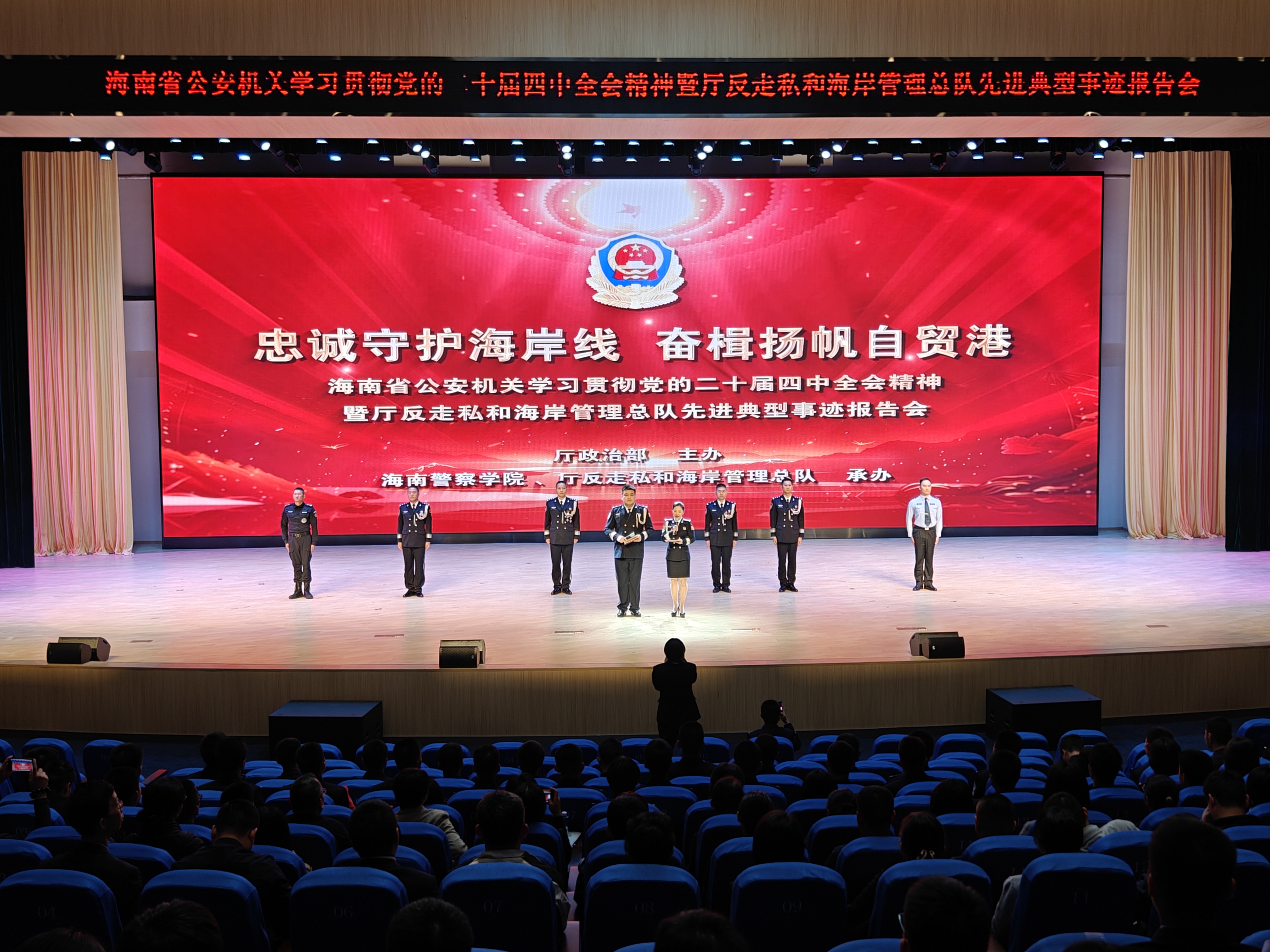 12月26日下午,海南警察学院大礼堂内暖意融融,掌声如潮。“忠诚守护海岸线 奋楫扬帆自贸港”海南省公安机关学习贯彻党的二十届四中全会精神暨厅反走私和海岸管理总队先进典型事迹报告会在此举行,全体师生现场聆听6位先进典型代表的报告,深刻感受人民警察忠诚履职、无畏艰险的使命担当。