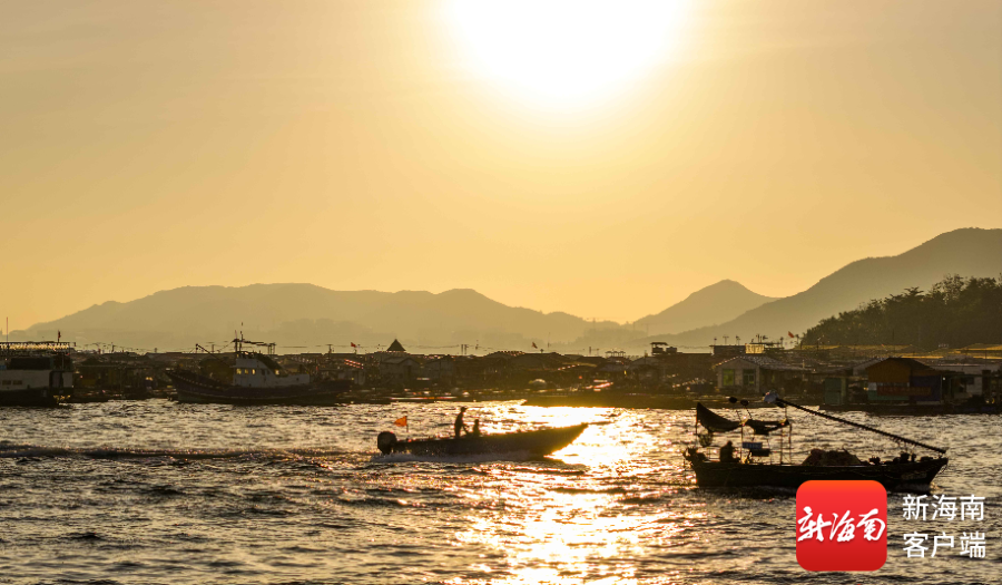 晨光中的陵水新村渔港。记者 刘孙谋 摄