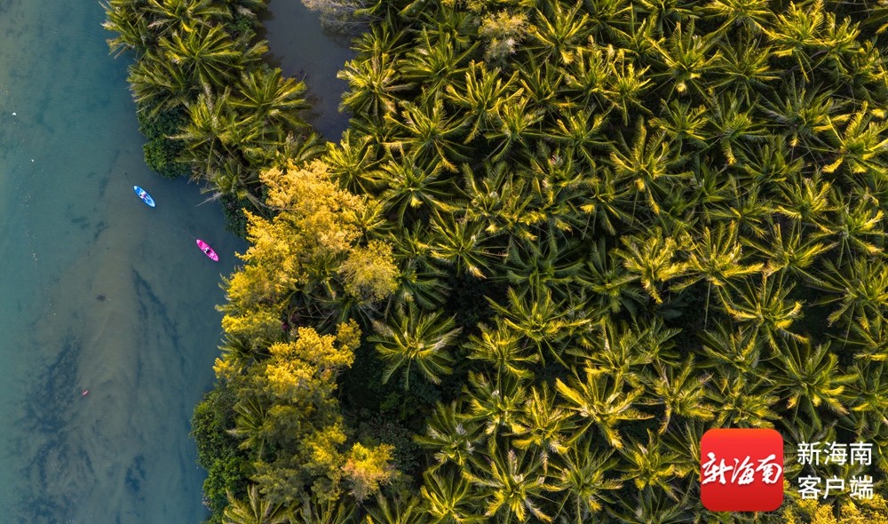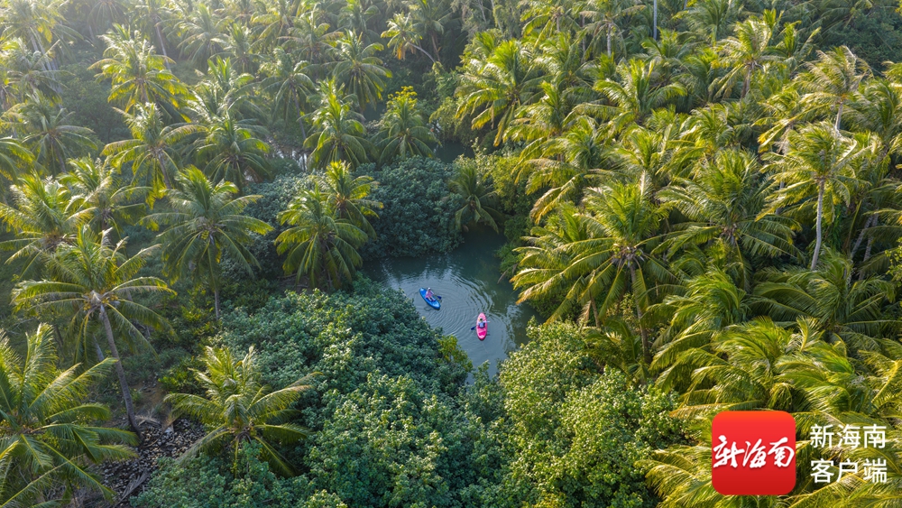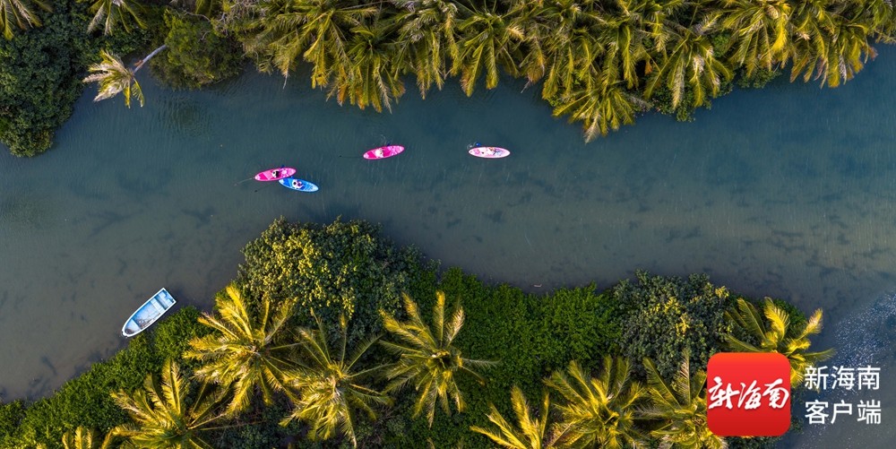 椰风拂岸,碧水含光。在陵水陵河椰子岛,连片椰林绿意盎然,一抹抹亮眼的红色桨板划破水面,游客们持桨泛舟,穿梭于椰影婆娑间,任海风裹挟着椰香拂面而来,尽享亲水时光。