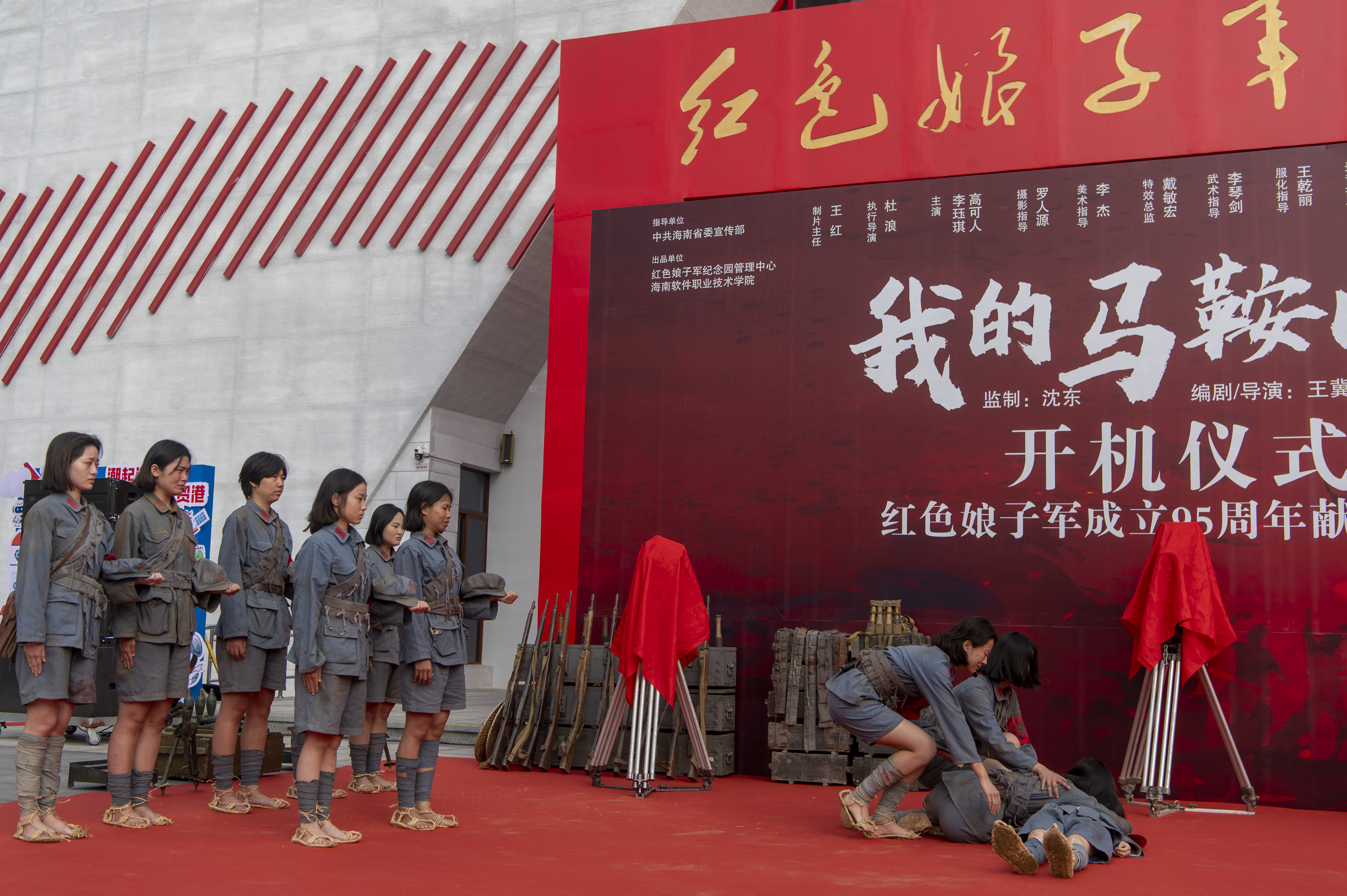 海南软件职业技术学院宣传统战部部长周夏雨、马克思主义学院院长王晓琳,琼海市委党史研究室主任吴恩泽,红色娘子军历史研究专家王仪、陈锦爱、谢才雄、王路生、庞启江,红色娘子军后人代表,琼崖纵队代表等参加开机仪式。