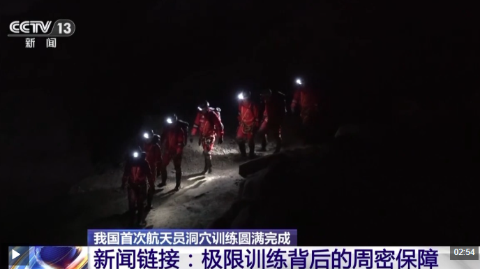 中国航天员科研训练中心 吴斌:比如说出现应急的,或者一些伤病,我们如何进行快速救援,比如通过铺设视频监控、应急的电话线,这样保证洞穴内外的通讯。我们专门组织了一次1:1的教员试训,对所有的安全措施进行了有效检验。