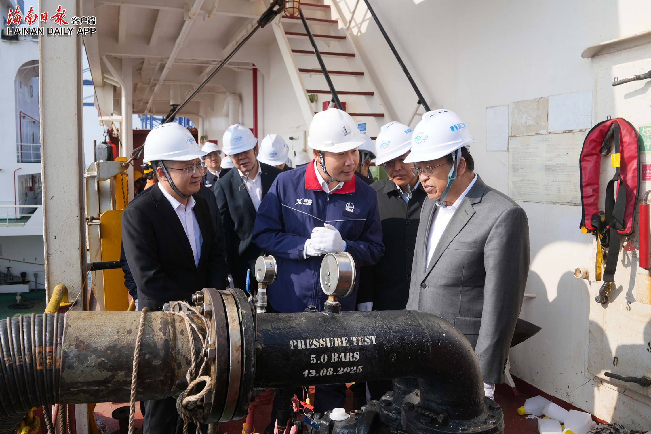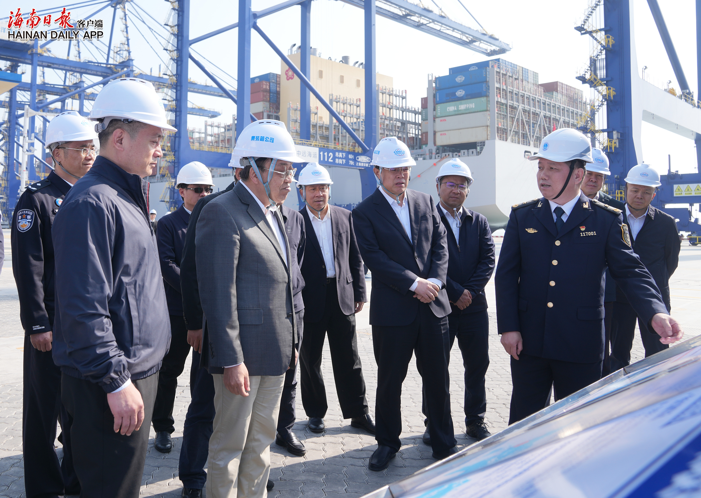 封关运作后的洋浦国际集装箱码头,集装箱货轮整齐靠泊,巨型桥吊有序作业。冯飞登船察看保税油加注作业流程,了解打造“双向双枢纽”国际海港、保税油加注政策实施情况,并在小铲滩反走私综合执法站调研。他指出,洋浦港要抢抓开放机遇,聚焦建立更加自由开放的航运制度,充分释放保税油加注等开放政策红利,优化通关监管流程,提升货物流转效率,形成政策制度综合优势,持续降低航运成本;大力发展航运服务业,进一步完善基础设施,深化“中国洋浦港”船籍港制度改革,加快打造“双向双枢纽”国际海港。要筑牢反走私防线,紧盯重点领域,坚持打防结合、综合治理,强化制度保障,构建反走私工作长效治理格局。