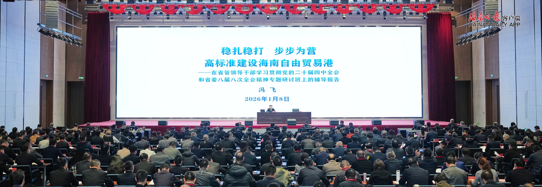 1月8日,省管干部学习贯彻党的二十届四中全会精神和省委八届八次全会精神专题研讨班在省委党校开班。省委书记冯飞作开班动员,并以“稳扎稳打、步步为营,高标准建设海南自由贸易港”为主题作首场辅导报告。