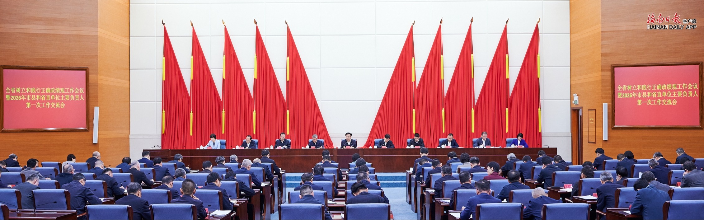 1月13日,全省树立和践行正确政绩观工作会议暨2026年市县和省直单位主要负责人第一次工作交流会在海口召开。省委书记冯飞讲话,省长刘小明主持会议,省政协主席李荣灿,省委副书记、政法委书记杨晋柏等省领导出席。