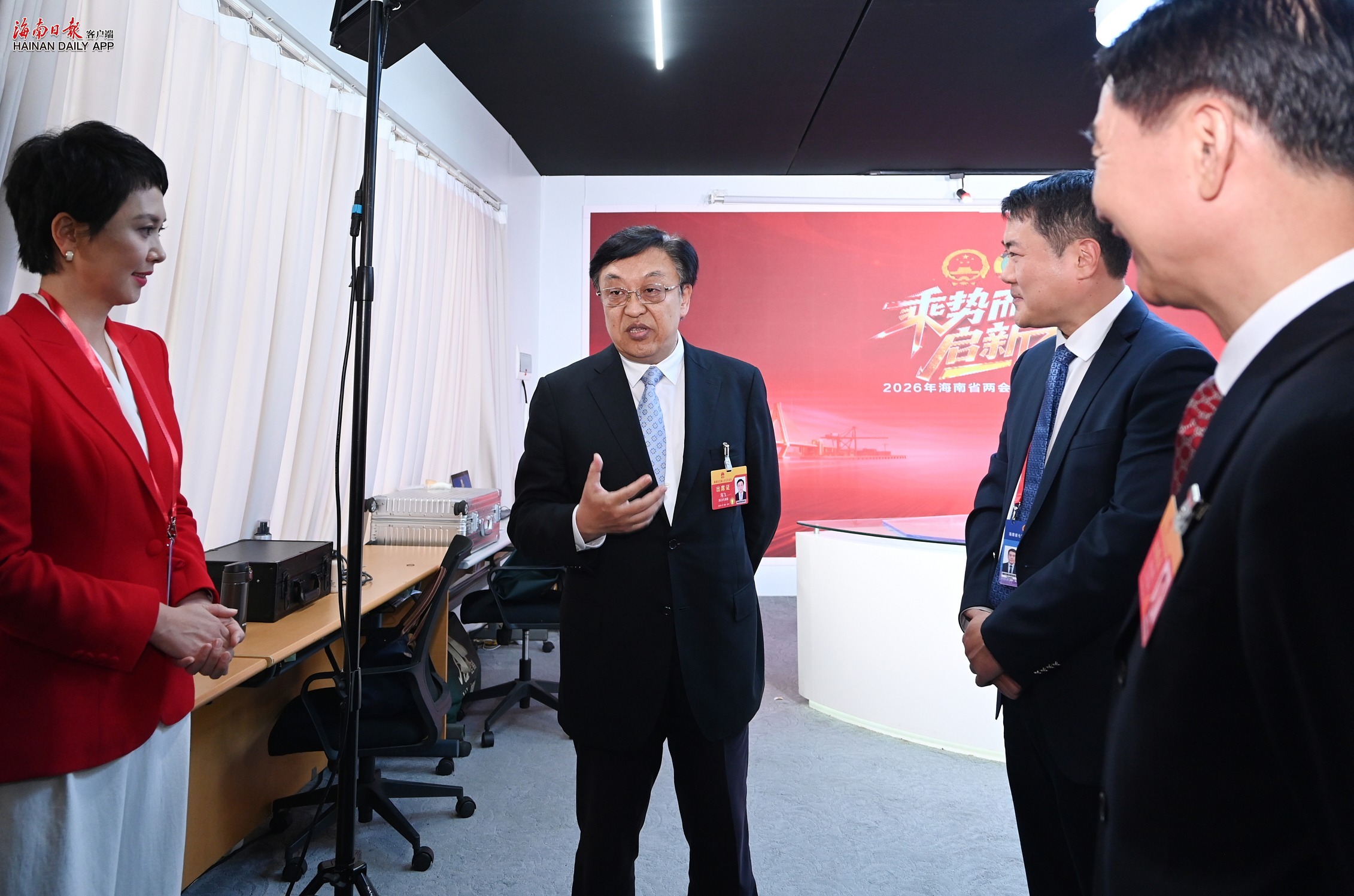 在省两会“代表委员通道”,冯飞了解集体采访活动组织开展情况后指出,要用好“通道”传播渠道,精心设置议题,更好展现自由贸易港建设成果,更好展现自由贸易港发展蓝图,更好展现代表委员履职风采。