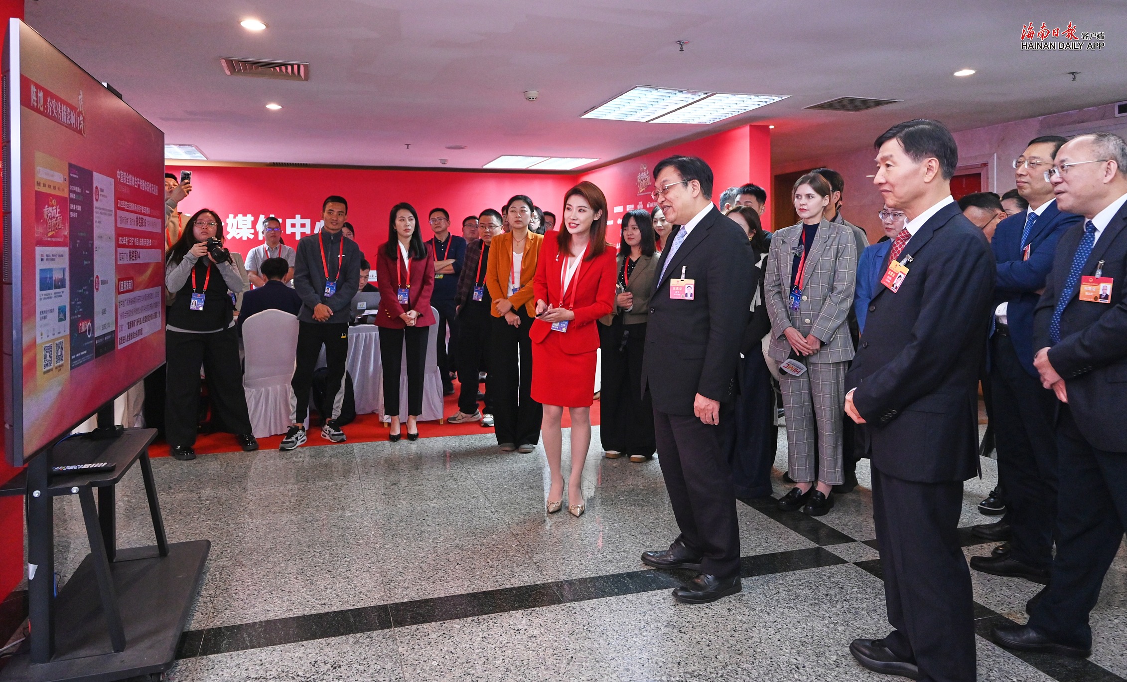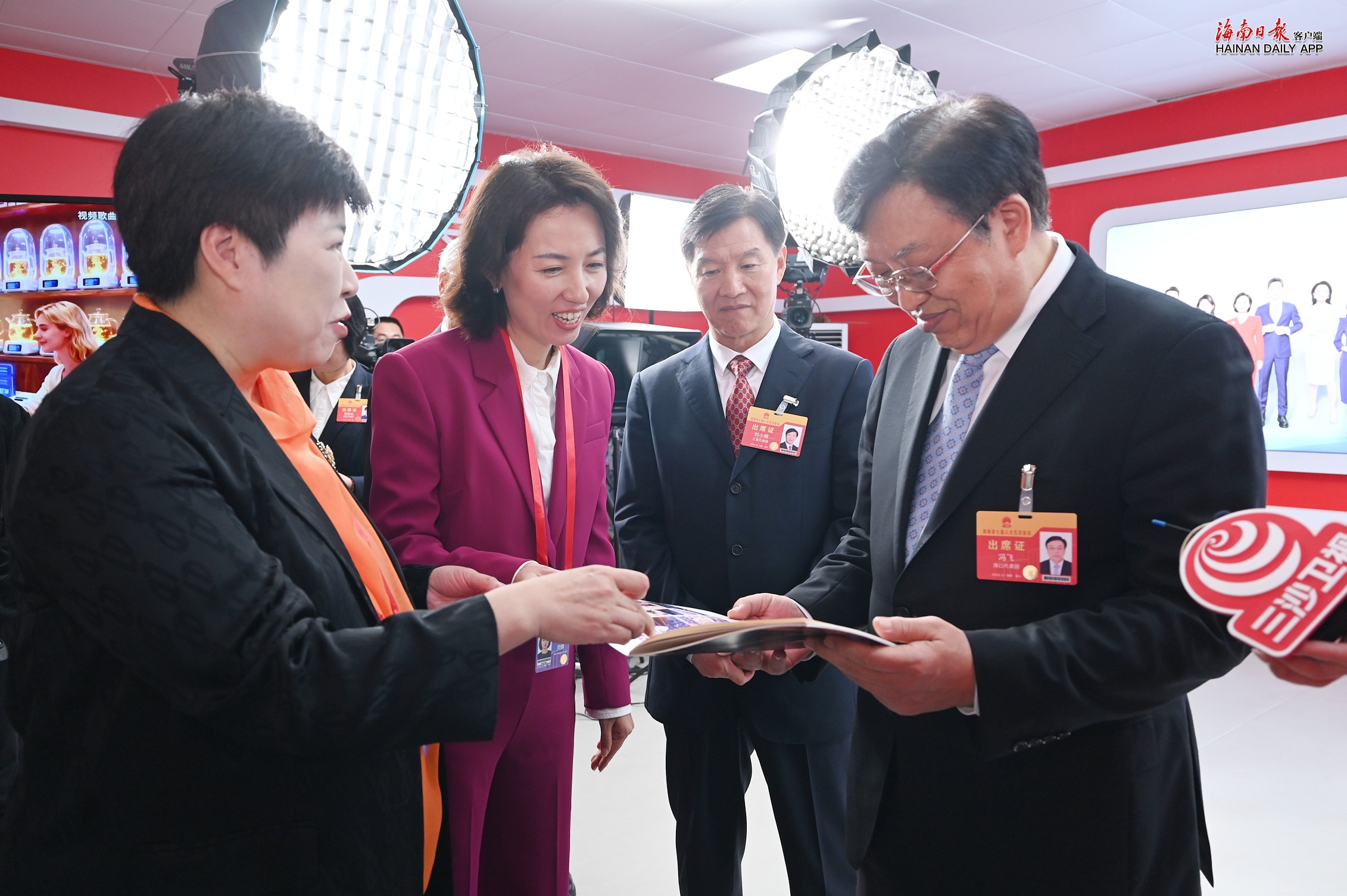冯飞、刘小明、李荣灿一行来到媒体工作区、两会全媒体演播室,与中央驻琼媒体和省内媒体新闻工作者交流,了解省两会新闻策划和报道情况,感谢大家为海南自由贸易港建设宣传工作付出的辛勤努力,对各媒体聚焦省两会主题,精心谋划、务实推进宣传报道工作的成效给予肯定。