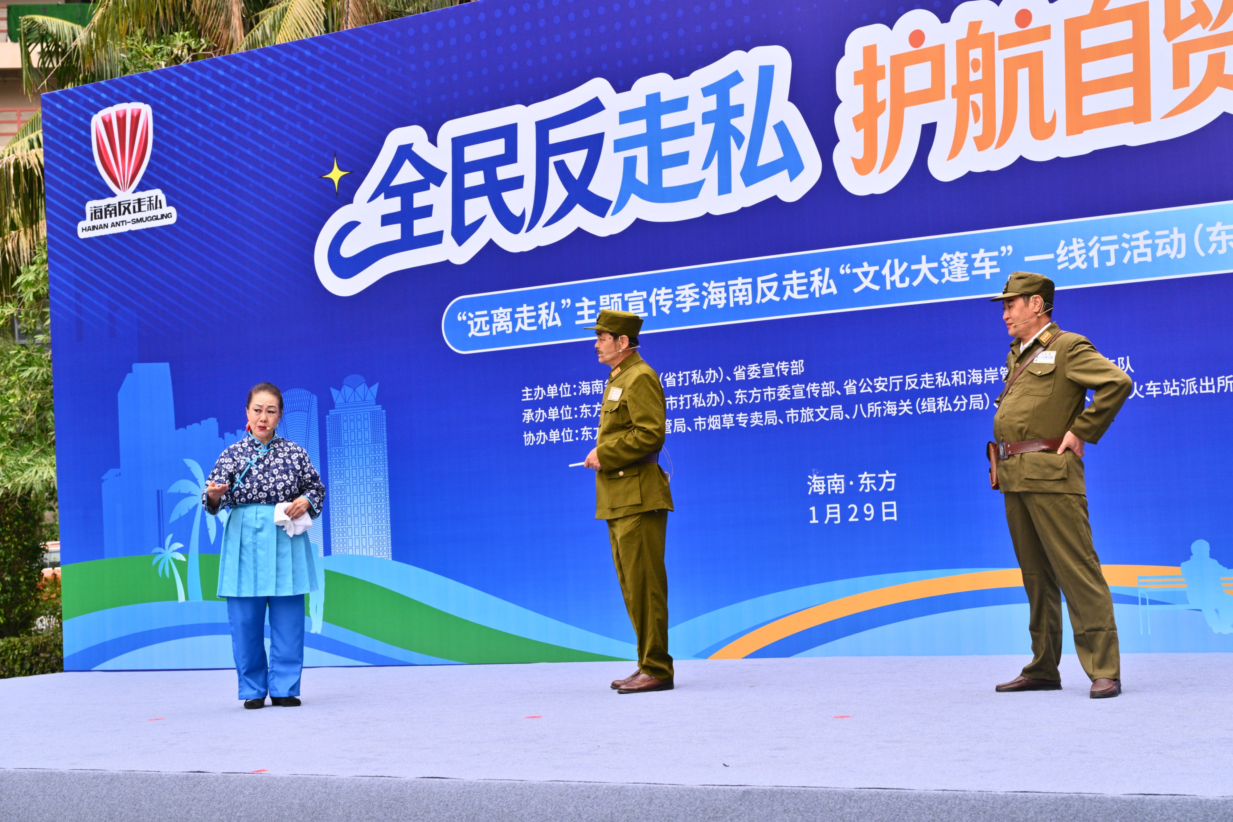 1月29日,海南自由贸易港“远离走私”主题宣传季启动仪式暨海南反走私“文化大篷车”一线行活动,在东方市举行。