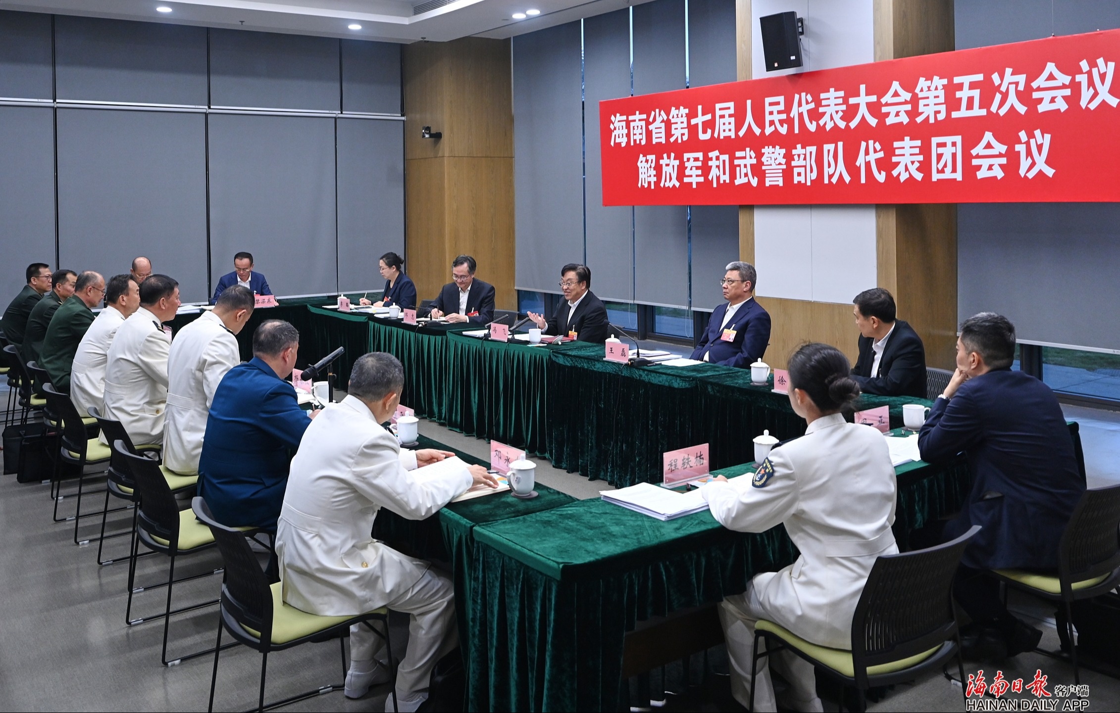 在解放军和武警部队代表团,冯飞代表省委、省政府感谢驻琼部队和广大官兵在军民共同守好祖国南大门、推动海南自由贸易港建设和高质量发展、抗击自然灾害等方面作出的贡献。他表示,军地双方要深入贯彻习近平强军思想,争当持续深化军民双拥共建的模范,争创军民携手高标准建设海南自由贸易港的实践范例,为海南高质量发展和高水平安全提供有力支撑,携手完成好党中央赋予海南的重大职责使命。海南将一如既往着力解决部队官兵安置发展、家属就业、子女教育等问题,不遗余力支持部队建设。