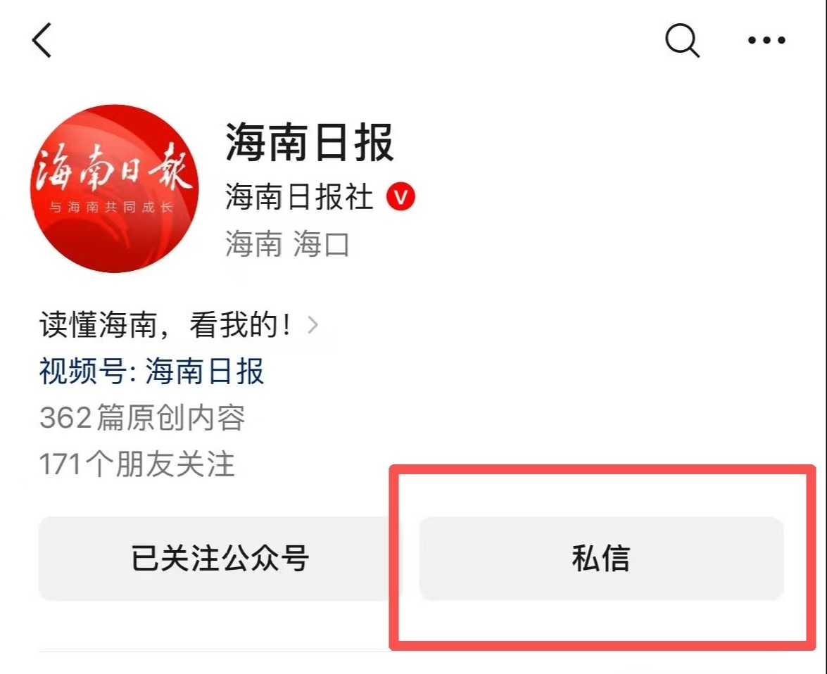 2、或点击海南日报微信公众号,点击私信进入对话栏。找到左下角的“客户端”,选择“客户端”进入后,在图示位置找到《有奖征集!用一副春联,寄语海南自贸港》稿件,点击进入稿件。