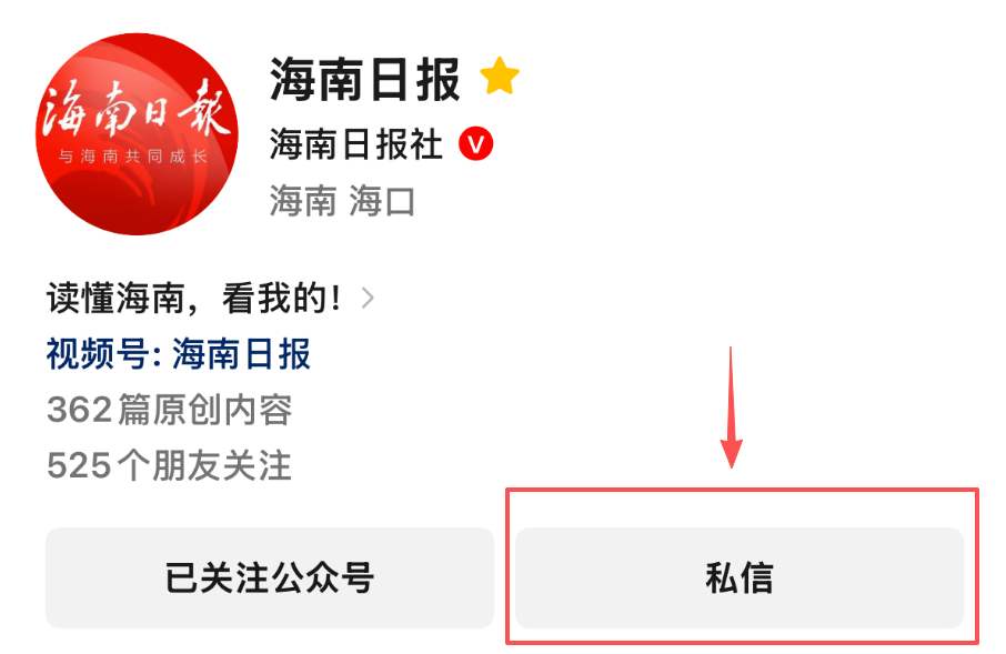 2、或点击海南日报微信公众号,点击私信进入对话栏。找到左下角的“客户端”,选择“客户端”进入后,在图示位置找到《千元稿费等你拿!“我给记者讲个暖心事”有奖征集启动》稿件,点击进入稿件。