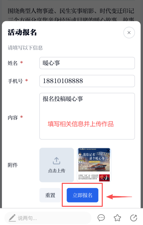需要注意的是,一个手机号只有一次投稿机会,且上传成功后不能修改,只要最后不点击“提交报名”,都可以返回前面的操作,重新填写、修改内容。
