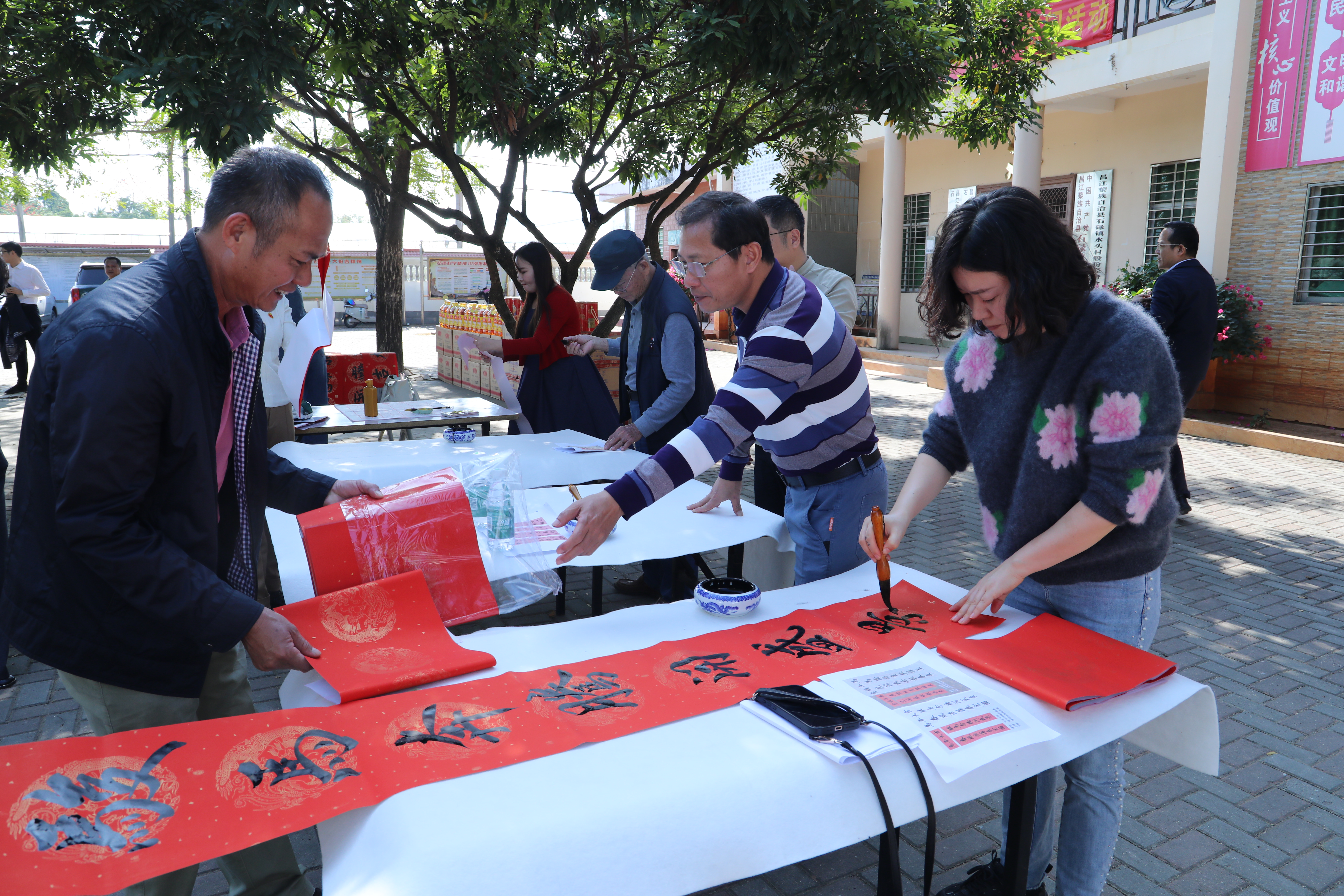 活动中,校地领导向村民送上慰问品和新春祝福。海经贸教授林长武等教师现场挥毫,为村民书写春联和“福”字。海经贸校领导与村民们拉家常,关心年货准备和春耕生计,并勉励水头村籍的海经贸大学生学成后助力家乡。