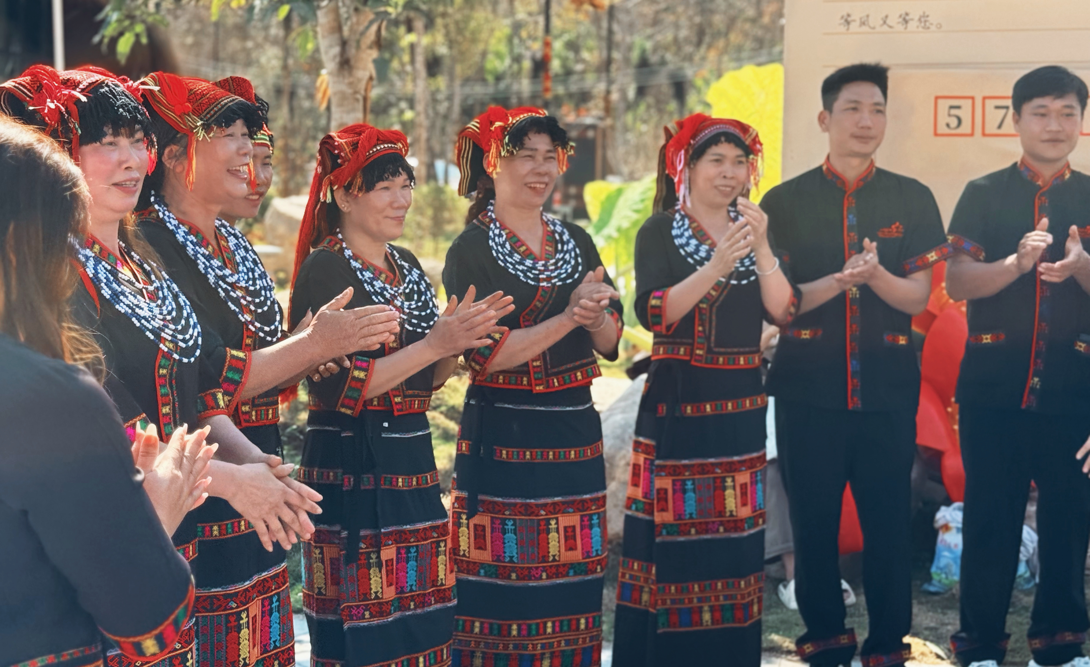 王下乡黎花里景区开业仪式上的王下乡浪论村歌舞队成员们。海南日报全媒体记者 刘阳秀 摄