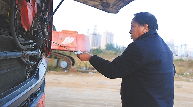 石师傅在进行出车前的检查。 海南日报全媒体记者 韦茂金 摄