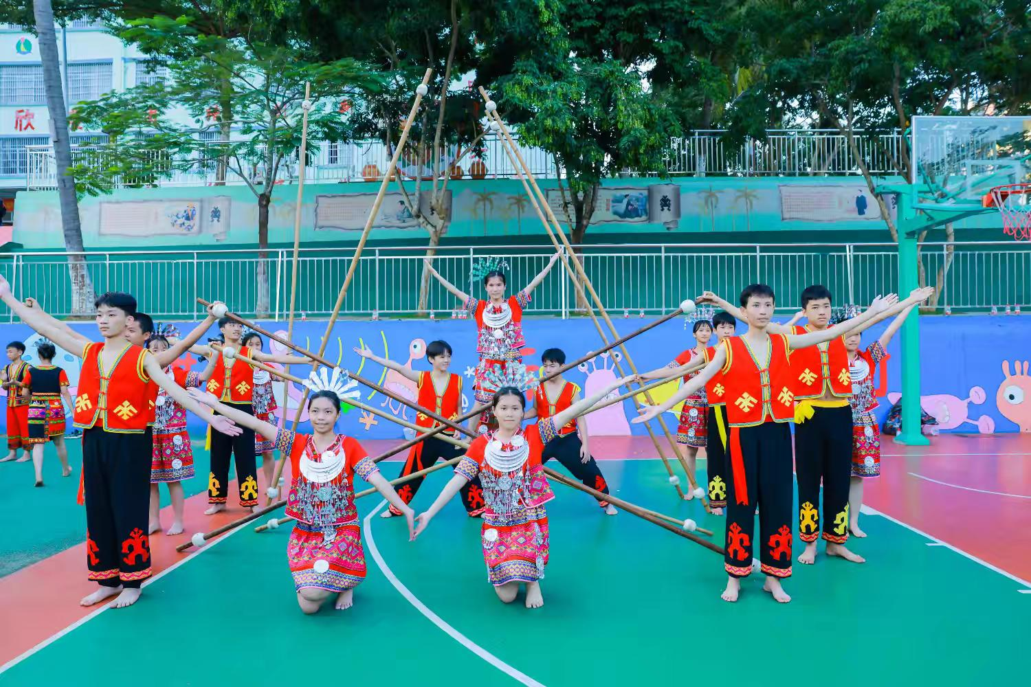 为了让师生对非遗“有感”,让课程资源不再“无效”,海南热带海洋学院创新性地构建了“高校智库+地方行政+基地学校+传承人群”四位一体的联动机制。通过与五指山市共建研究中心,学校组织专家团队深入水满中心学校、五指山二小等一线蹲点调研,将黎族竹木器乐、传统体育游艺等非遗资源,系统化转化为可教可学的课程模块。面向五指山市中小学生常态化开展竹竿舞教学,以“舞韵传情,乐享非遗”为主题,融合节奏训练、团队协作与文化溯源等,学生参与率达100%。学校还将南海文化博物馆打造成“行走的课堂”,累计接待国内外中小学生4万余人次。