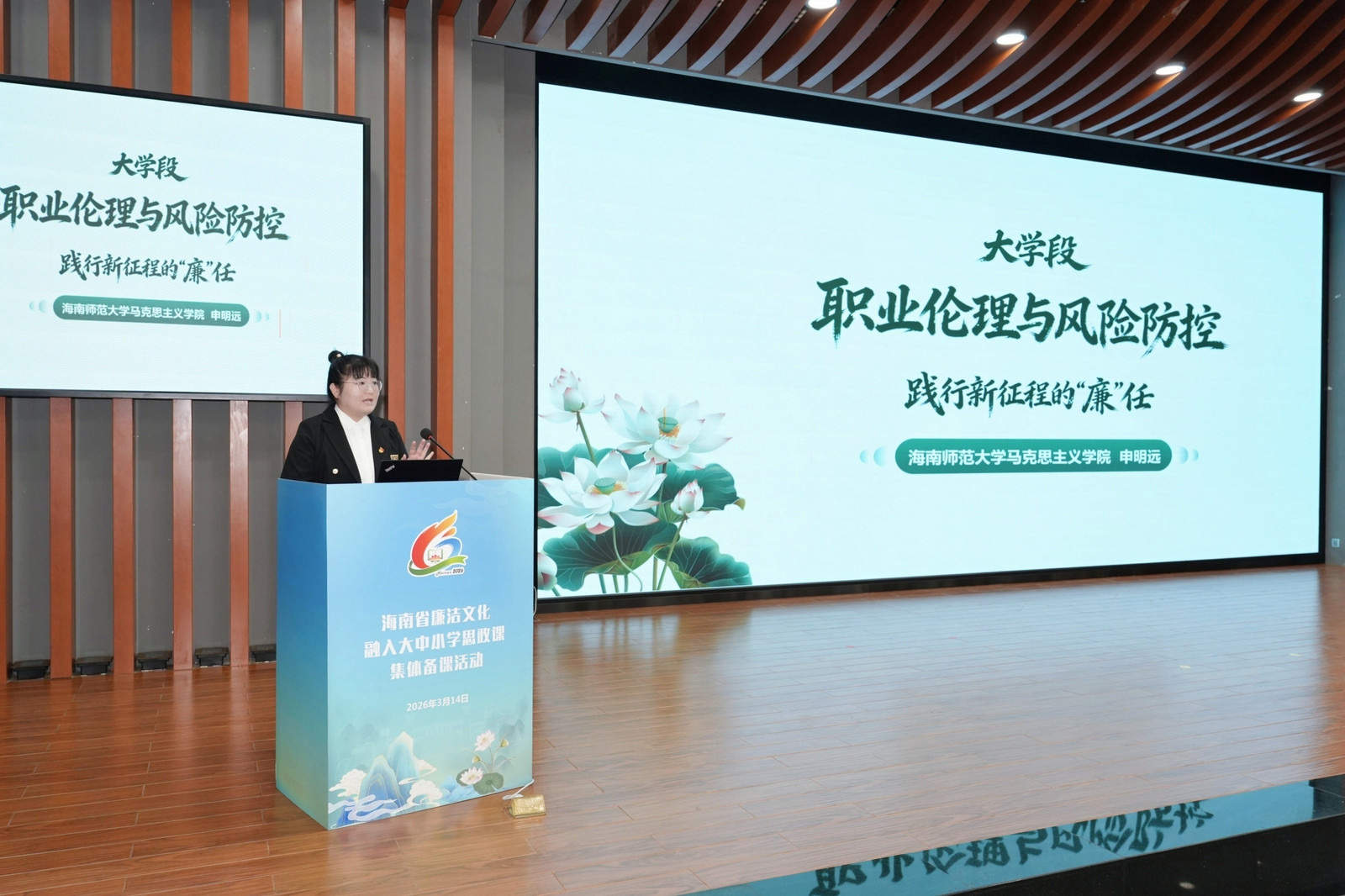 海南师范大学杨威教授作题为“让清廉的种子在自贸港沃土上向阳而生”的报告。海南日报全媒体记者韦茂金 摄