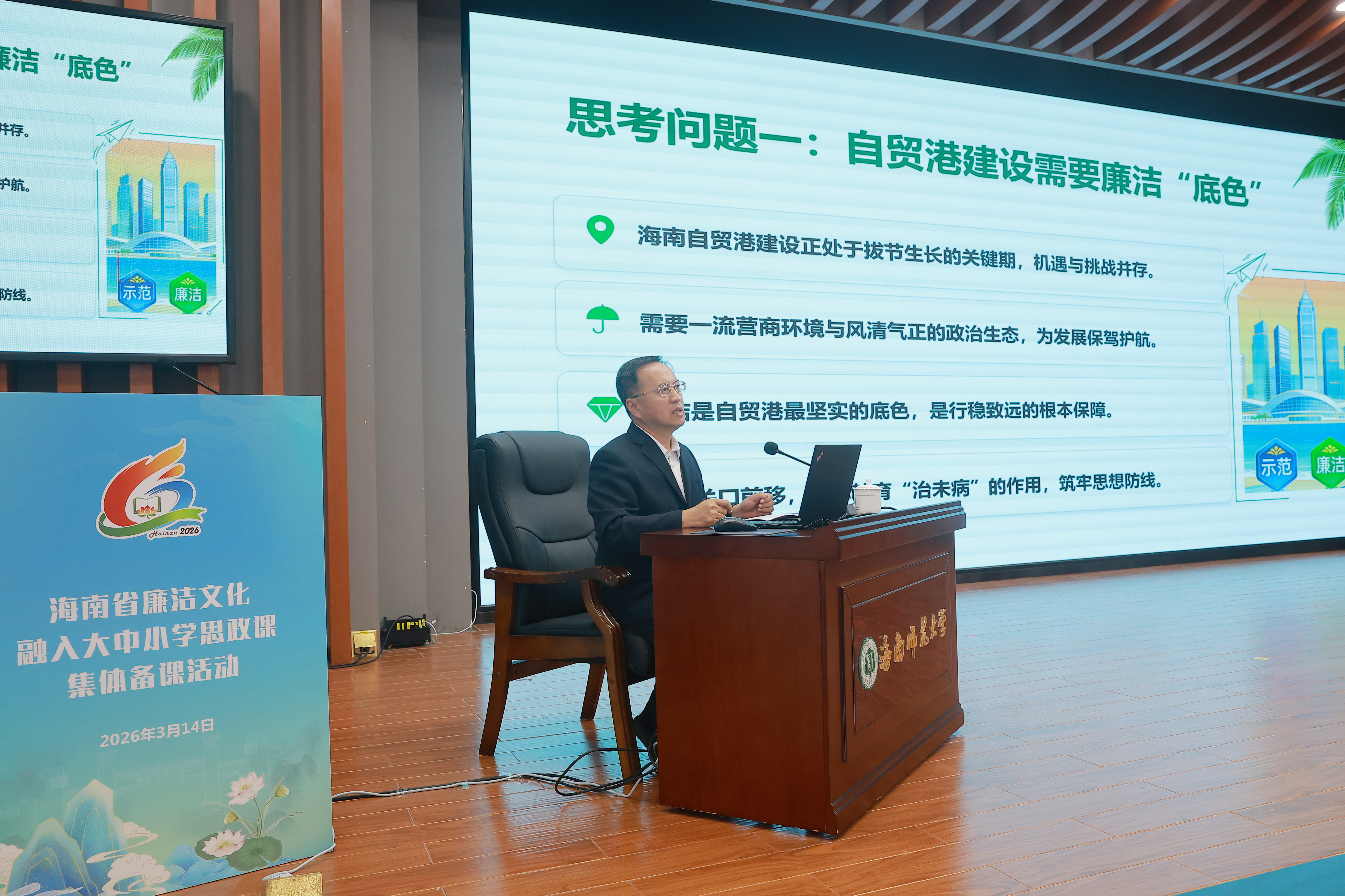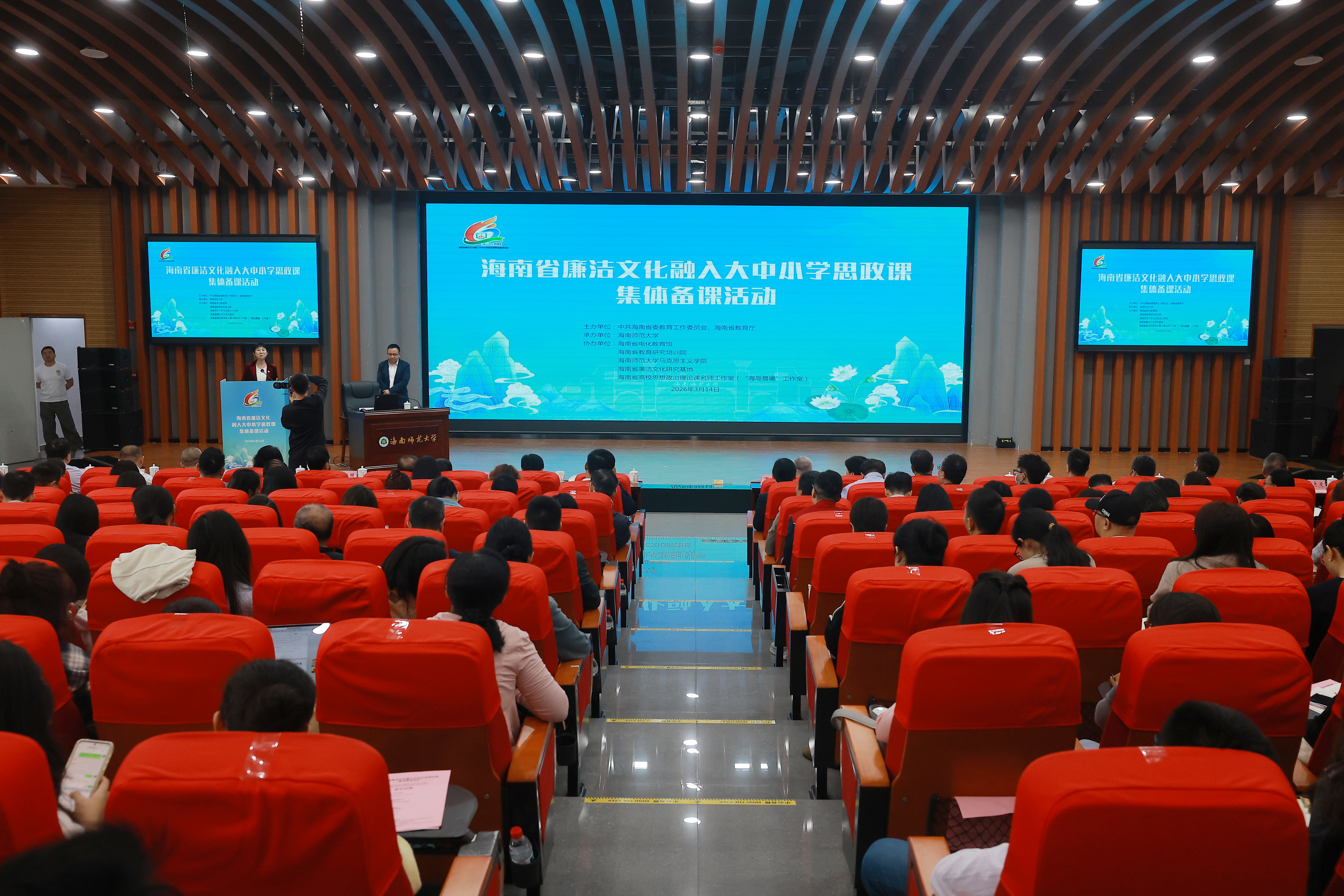 3月14日上午,由海南省委教育工委、省教育厅主办的海南省廉洁文化融入大中小学思政课集体备课活动在海南师范大学举行。