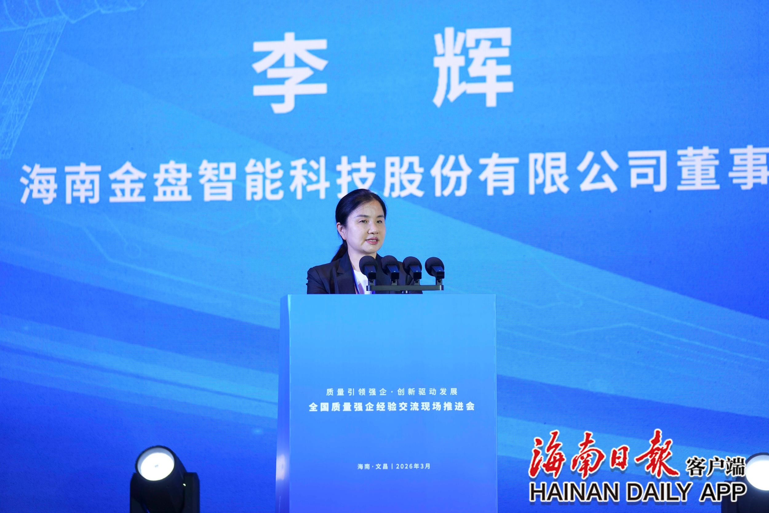 3月18日,全国质量强企经验交流现场推进会上,海南金盘智能科技股份有限公司董事李辉分享企业在质量强企建设中的具体做法与经验成果。海南日报全媒体记者 李天平 摄