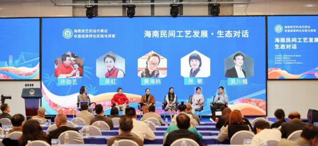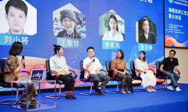 活动特别设置的三场主题对话,分别聚焦“根脉”“创作”与“生态”。首场“星火对话”以“在土地中生长:民艺的本真与生命力”为主题,邀请基层手艺人讲述与技艺相伴相生的故事,展现民间工艺的鲜活底色与传承中的坚守。第二场“创作对话”围绕“从技艺到艺术:非遗的创造性转化”展开,探讨如何在坚守传统技艺的基础上融入个人艺术表达与当代审美。第三场“生态对话”以“构建繁荣生态:设计、渠道与市场共振”为议题,从品牌建设、市场渠道、设计赋能等角度,为海南民艺的可持续发展提供切实建议。