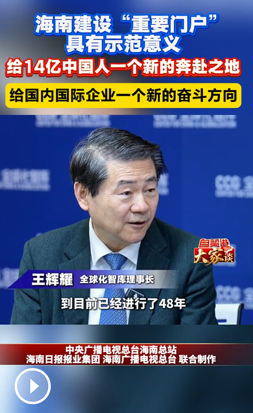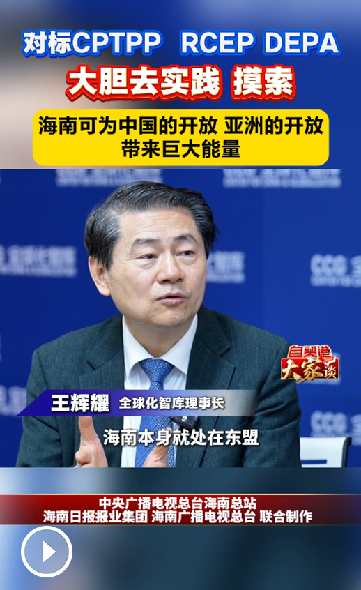海南自贸港如何率先对接全球高标准经贸规则,打造制度型开放高地?如何发挥优势,深化与东盟的产业合作和经贸联系?本期《自贸港“大家”谈》来到北京,采访全球化智库理事长王辉耀。