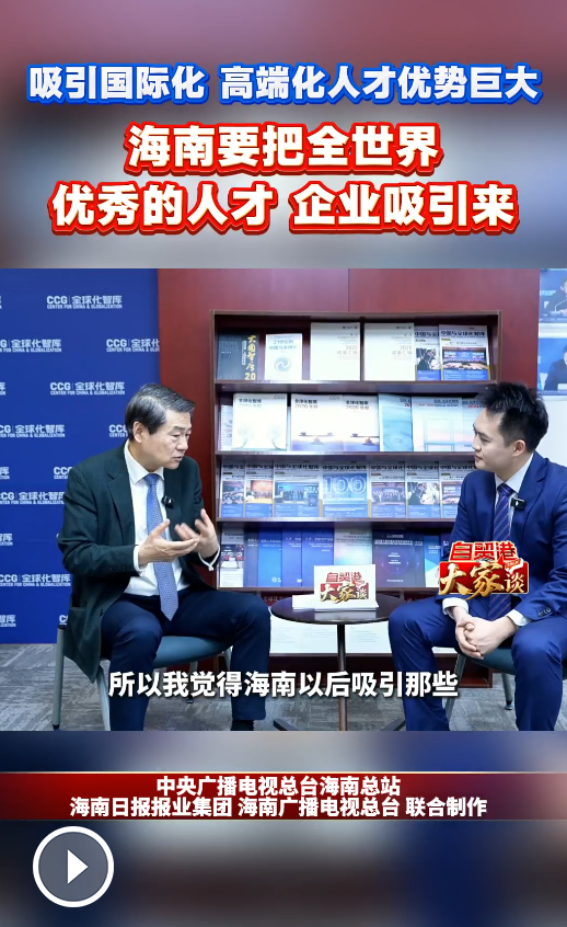 王辉耀:作为未来中国开放的门户,这个地方必须是高端人才扎堆聚集的,当然还有各个层级的人才。现在,全世界有7000万华人华侨,为什么海南不能打造成全世界华人华侨聚集的一个新的家园。我觉得海南吸引国际化、高端化人才的优势是巨大的。同时得鼓励企业,比如一些英才计划可以给企业配套,如果这个企业能找到这些人才,那就可以给它提供便利优势。人来了,企业就愿意来,企业来了,人也愿意去,它是一个相辅相成的过程。怎么样把全世界优秀的人才吸引来、优秀的企业吸引来,我觉得这是海南需要做的一篇大文章。更多地把海南推广出去,吸引全世界的大学到海南来办学,吸引全世界的学生到海南来留学,喜欢海南、爱上海南、留在海南,海南的发展就有了更坚实的基础,也真正成为全球化的海南自贸港。