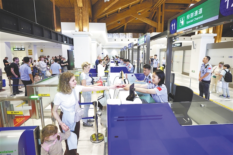 三月二十四日,凤凰出入境边防检查站民警为旅客办理入境手续。蒙绪顺 摄