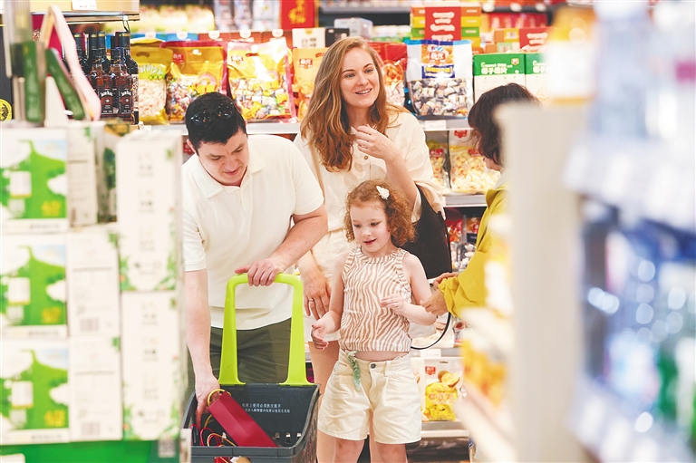 3月24日,外籍游客在三亚湾壹号广临达超市购物。海南日报全媒体记者王程龙 摄