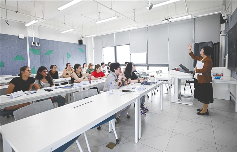 在海南陵水黎安国际教育创新试验区,北京语言大学海南国际学院的老师给外籍学生上中文听说课。新华社发