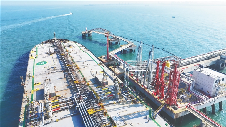 全岛封关后第一批“零关税”石化原辅料顺利通关并开始卸货作业。海南日报全媒体记者周达延 摄