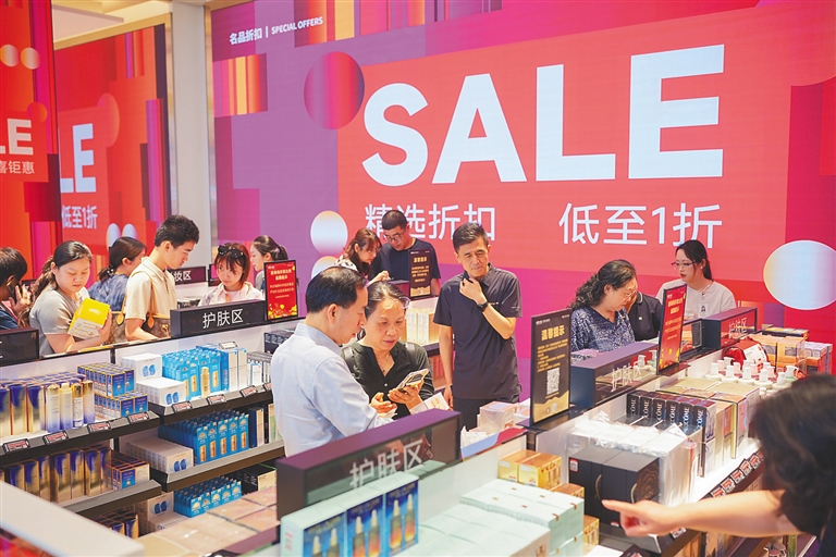cdf海口国际免税城内,消费者在选购免税品。海南日报全媒体记者张茂 摄