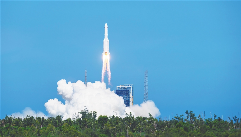 长征五号火箭在文昌航天发射场发射升空。海南日报全媒体记者宋国强 摄
