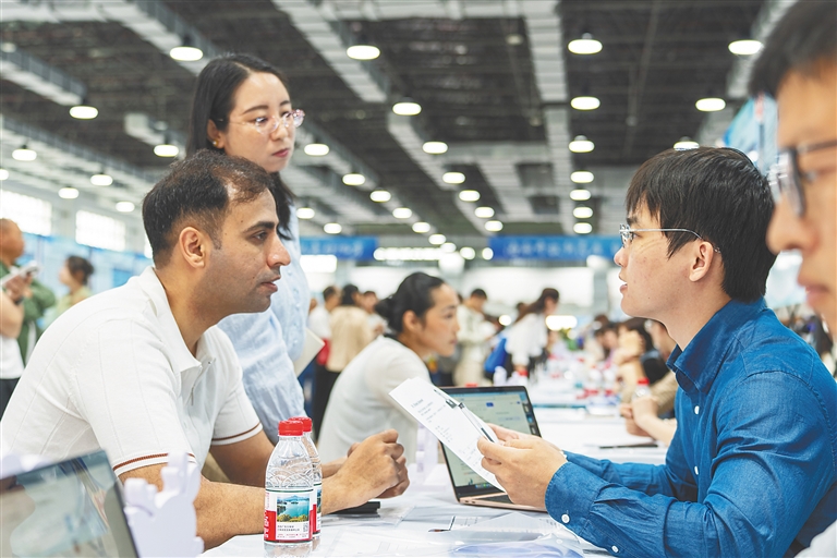 海南招聘活动上,外籍求职者前来应聘。海南日报全媒体记者袁琛 摄