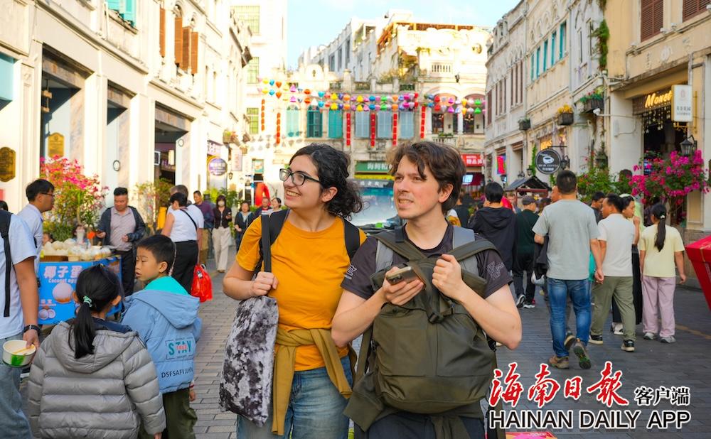 海口市中山路百年骑楼老街,吸引众多免签入境的外国游客。海南日报全媒体记者 张茂 实习生 柳一诺 摄