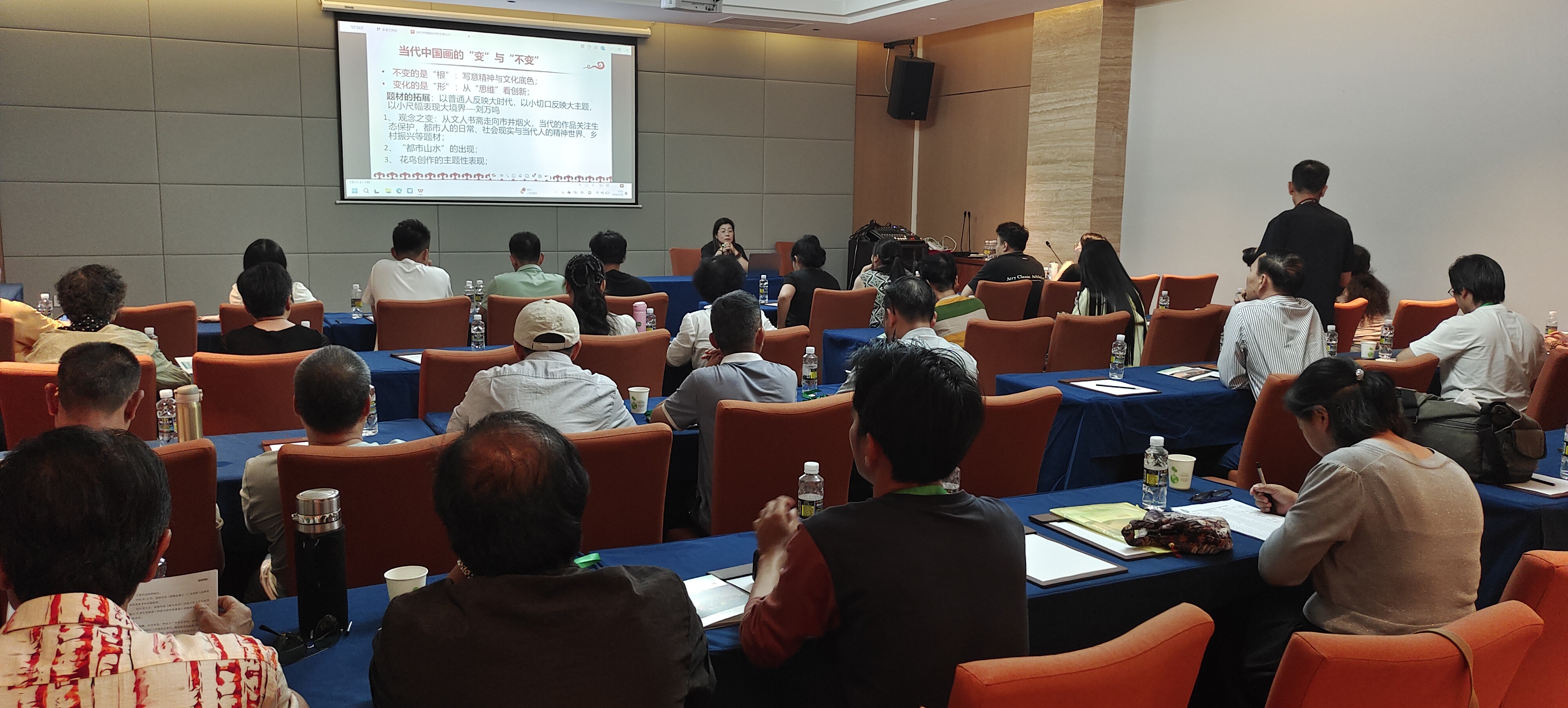 培训班邀请了知名专家为学员授课,海南师范大学美术学院教授、海南省美术家协会副主席卢向玲《当代中国画创作形式表达与作品赏析》,琼台师范美术系副主任、海南省美协副秘书长张天平老师《绘画形式语言与创作》等课程,从名作风格欣赏解析、作品主题立意、构图经营、色彩表现等方面,为学员们细致讲解,帮助大家破解创作瓶颈。海南省美术家协会委员当代绘画艺术委员会副主任、海口油画协会副会长林鸿平的《AI辅助艺术创作实践》,是本次课程设计上的一大亮点,AI辅助在美术创作上的运用是新时代思潮的体现,是传统创作方式之外的新思路,这一课程对学员们今后的创作带来了新启迪新方法,缩短了创作者从思想到成果的时间距离。