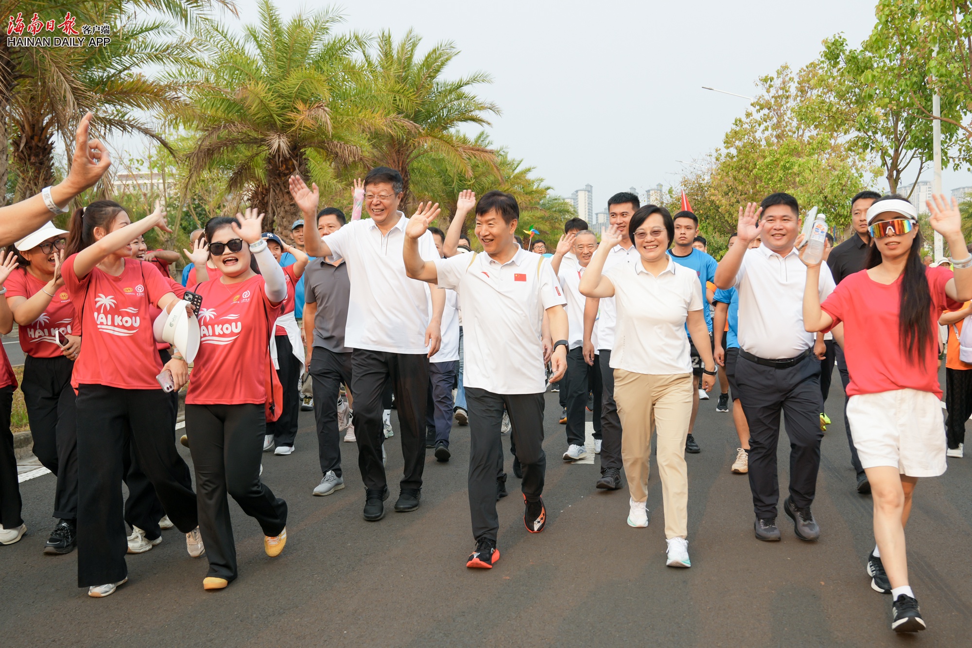 4月19日,“建功自贸港·劳动筑梦想”2026海口万人健步大会在海口举行,省委副书记、省长刘小明鸣笛发令并全程参与。
