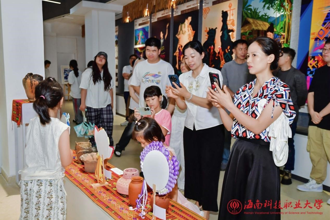 黎族原始制陶技艺国家级非遗传承人刘梅珍、黎族传统纺染织绣技艺省级非遗传承人羊玉兰应邀参加开幕式。刘海珍表示,希望同学们能主动了解、热爱、传承非遗文化,让黎族、苗族非遗技艺在校园生根发芽、创新发展。