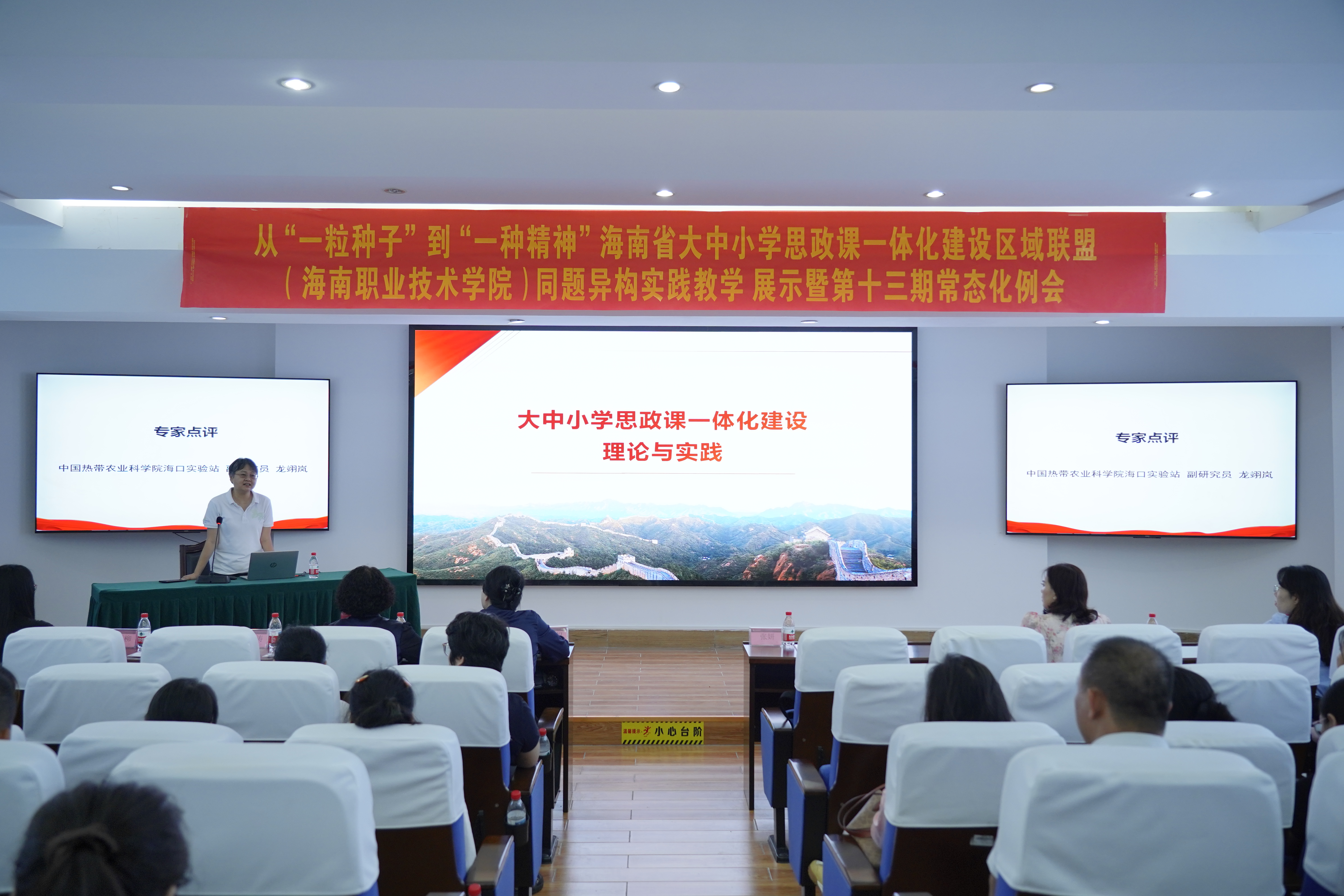 教学展示后,与会专家进行了深入研讨。海南师范大学马克思主义学院郑东艳教授围绕《大中小学思政课一体化建设的理论与实施》作了专题讲座。本次活动通过实景教学、研讨交流与专家引领,有效促进了不同学段思政教师的交流互鉴,为探索符合学生认知规律的一体化思政教学模式、提升思政课铸魂育人实效提供了宝贵经验。与会师生纷纷表示,要从科学家精神中汲取力量,立志科技报国,勇担时代使命。
